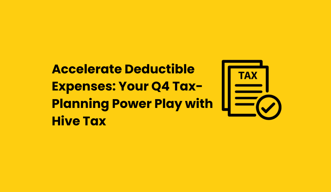 Take the Next Step: Reach out now to schedule a Q4 strategy session. Together we can run projections, map out accelerated deductions, and make sure you and your clients close out the year tax-optimized. Use Hive tax tool to power your plan—and feel confident you’re leveraging every deduction available.