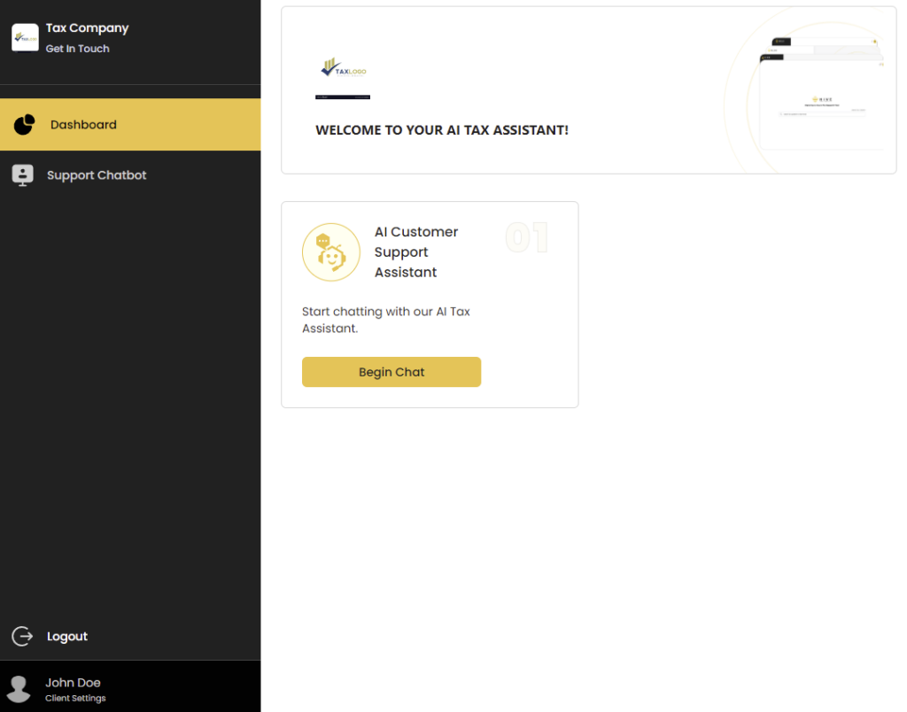 When your account has been created successfully, you will then be taken to your Hive AI Dashboard homepage with your company name and logo at the top left and your name at the bottom left.