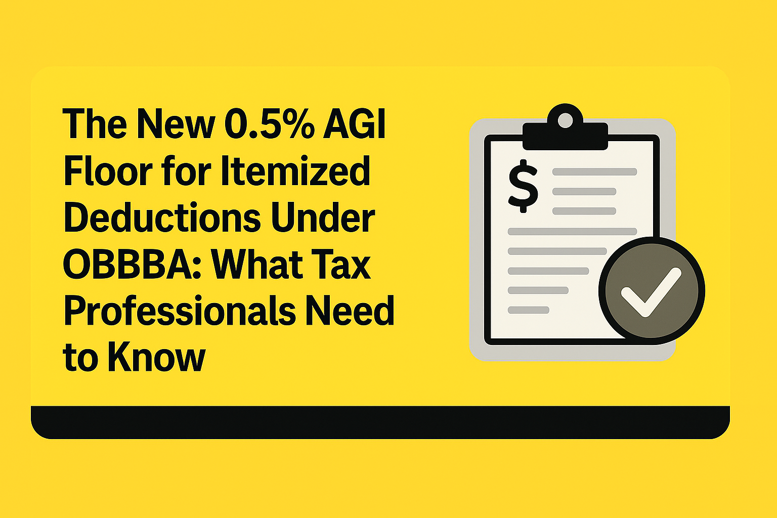 The One Big Beautiful Bill Act (OBBBA) introduces a 0.5% AGI “floor” on itemized deductions—an important shift for taxpayers and advisors alike. This blog explores what this new threshold means, who it affects, and how tax professionals can leverage AI tax research and planning tools, including agentic AI in tax, to recalibrate client strategies under the updated law. Stay compliant and ahead of the curve—read on to understand the tax implications and planning opportunities.